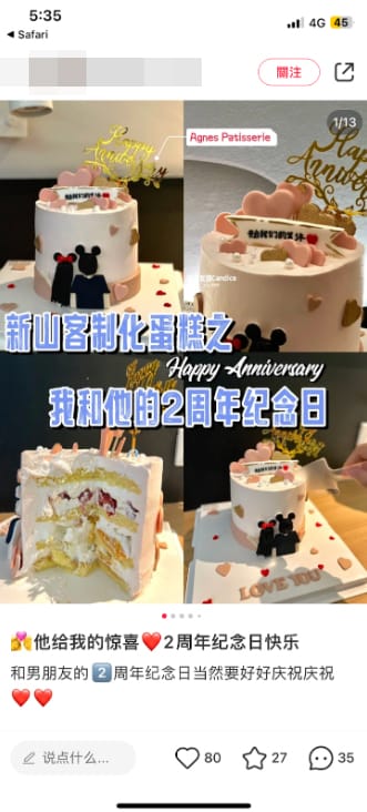 Agnes Patisserie uses Xiaohongshu to increase brand visibility and attract a younger, trend-conscious audience. Collaborating with KOCs helps build trust and showcase their custom cakes through authentic, lifestyle-driven content.